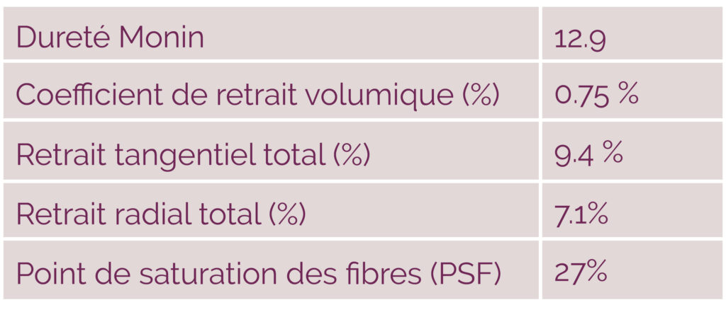Le bois de Balata franc a une densité de 1,10 à 12% d’humidité.