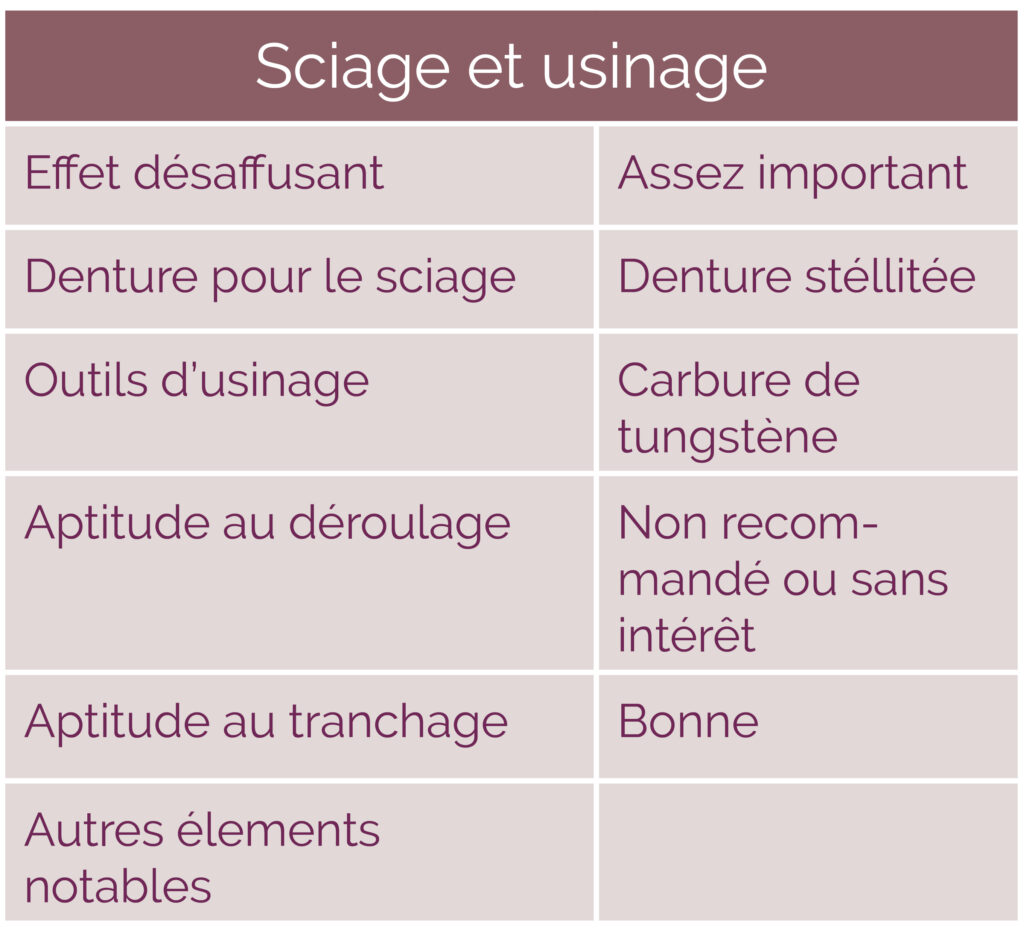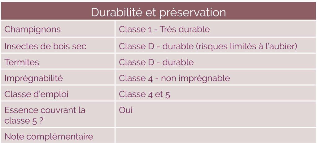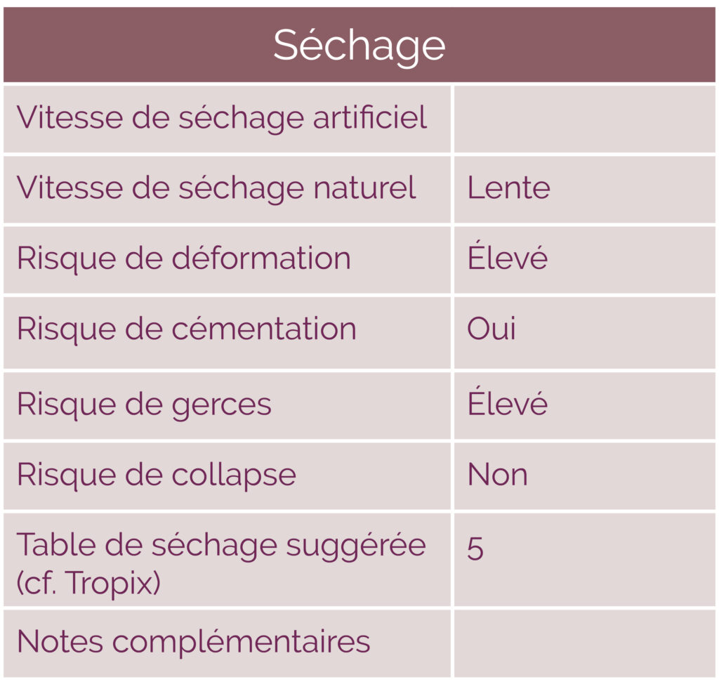 Son bois a été qualifié en structure par le CTBF Guyane, il est donc utilisable pour des emplois structurels (classement HS STI).