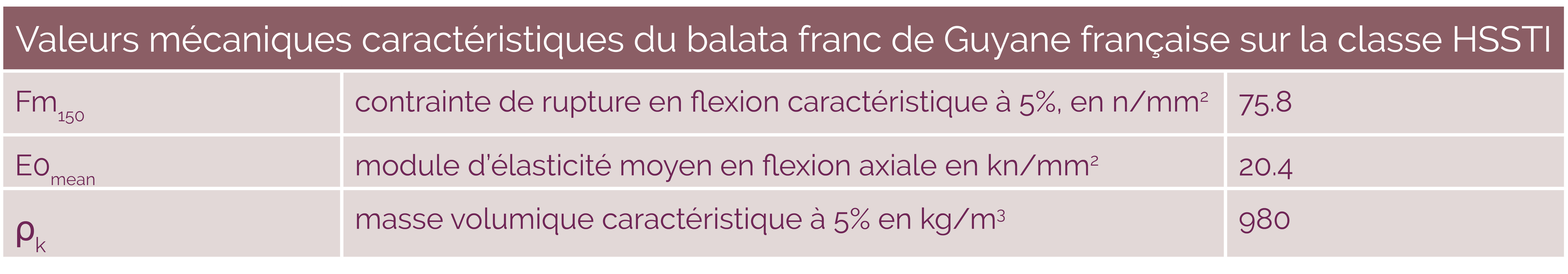 Les sciages de Balata, d’origine Guyane française, de qualité HS STI, peuvent être assignés à la classe D70 (EN 338).