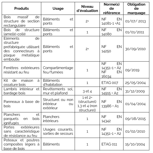 Produits bois relevant de la RPC avec marquage CE obligatoire